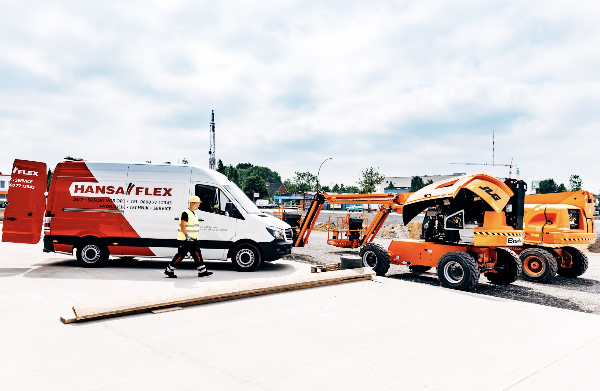 HANSA‑FLEX ist bei Boels aber nicht nur gefragt, wenn der Hydraulik-Sofortservice innerhalb kürzester Zeit auf Baustellen gebraucht wird. Auch bei geplanten Wartungsarbeiten der großen Maschinen greift die Kooperation. Wenn in den fünf zentralen Werkstätten in Hamburg, Berlin, Willich, Karlsruhe oder München Kettenbagger oder Hubarbeitsbühnen komplett neu verschlaucht werden, ist neben dem Hydraulik-Sofortservice auch der Industrieservice gefragt. Denn ein solches Projekt dauert in der Regel mehrere Tage bis Wochen. Ob bei den geplanten Wartungsarbeiten oder bei Notfällen – Thomas Stoffel ist mit seinem Hydraulikpartner sehr zufrieden: „Hydraulikprobleme sind für uns und unsere Kunden keine Probleme, weil wir mit HANSA‑FLEX eine professionelle Lösung haben, die von jedem jederzeit gestartet werden kann.“